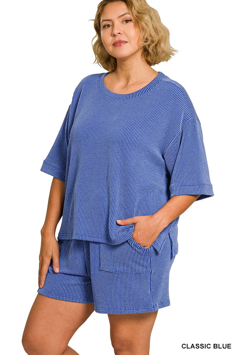 PLUS RAISED RIB SHORT SLEEVE TEE & SHORT PANTS SET