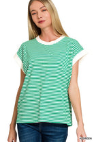 Striped Contrast Trim Top