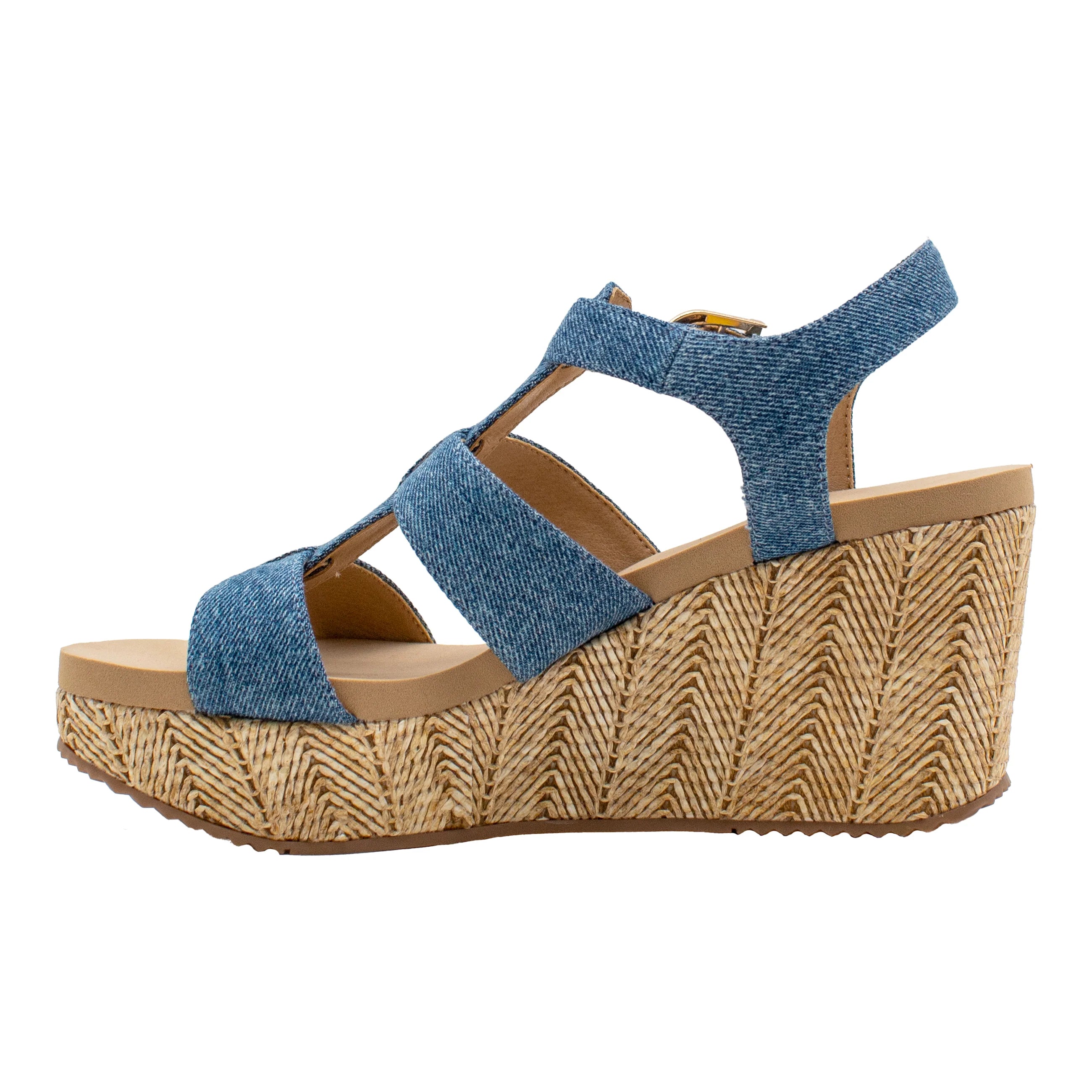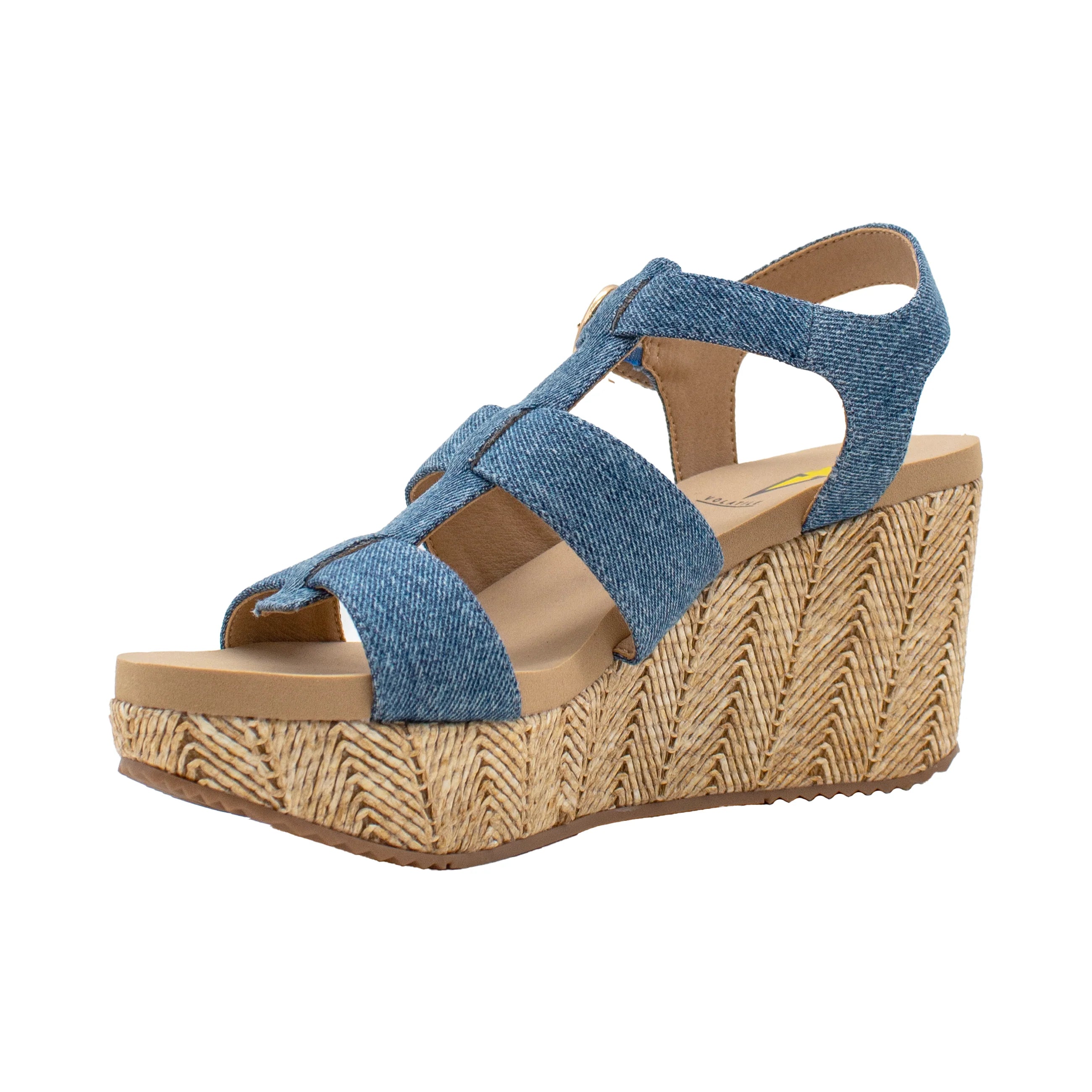 Volatile TORY FAUX LEATHER DOUBLE CRISS CROSS WEDGE in Black