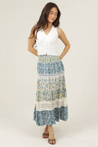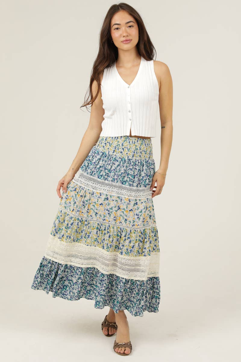 TIERED LACE TRIM SMOCKED WAIST MAXI SKIRT