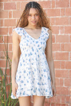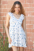 Blue Floral Cap Sleeve Dress by Angie