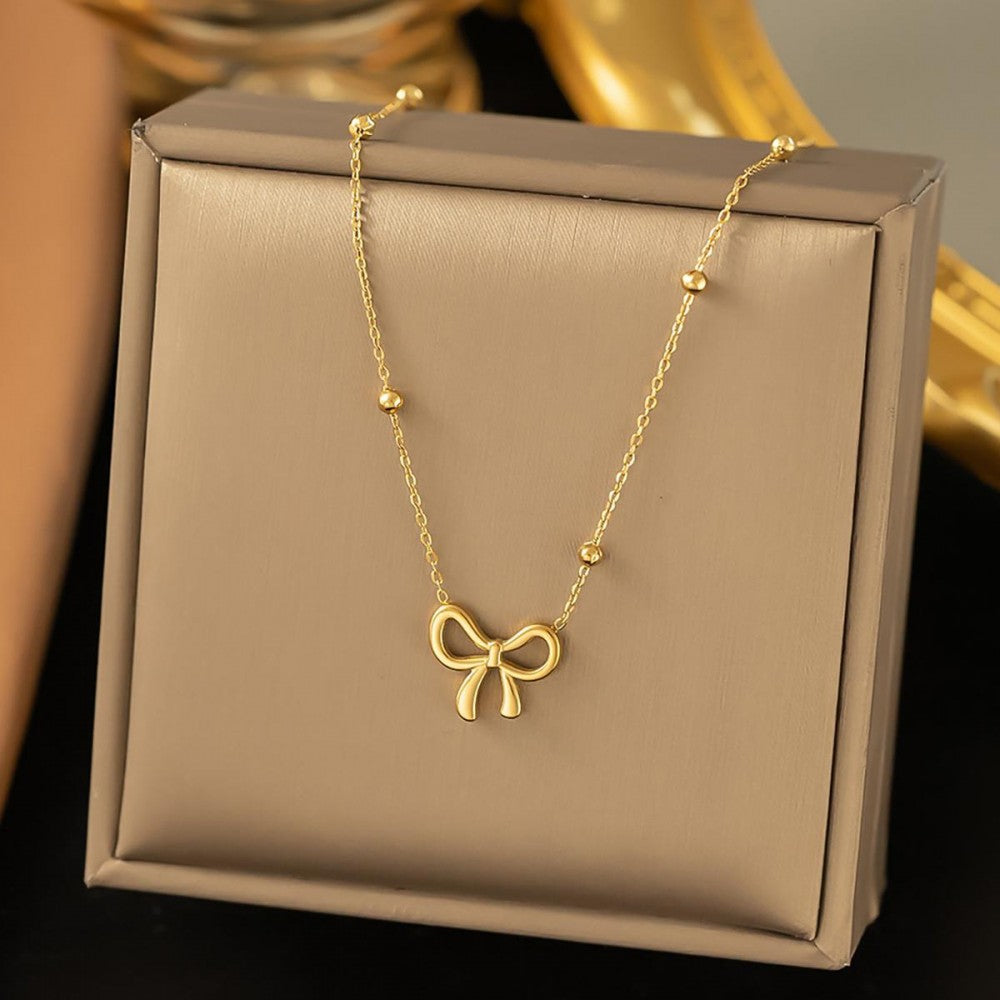 Upgrade your jewelry game with our elegant Stainless Steel Saturn Chain Link Necklace! Featuring a charming gold bow station, this necklace adds a touch of cuteness to any outfit. Made of high-quality stainless steel, it's durable and timeless. Elevate your style with this must-have accessory.