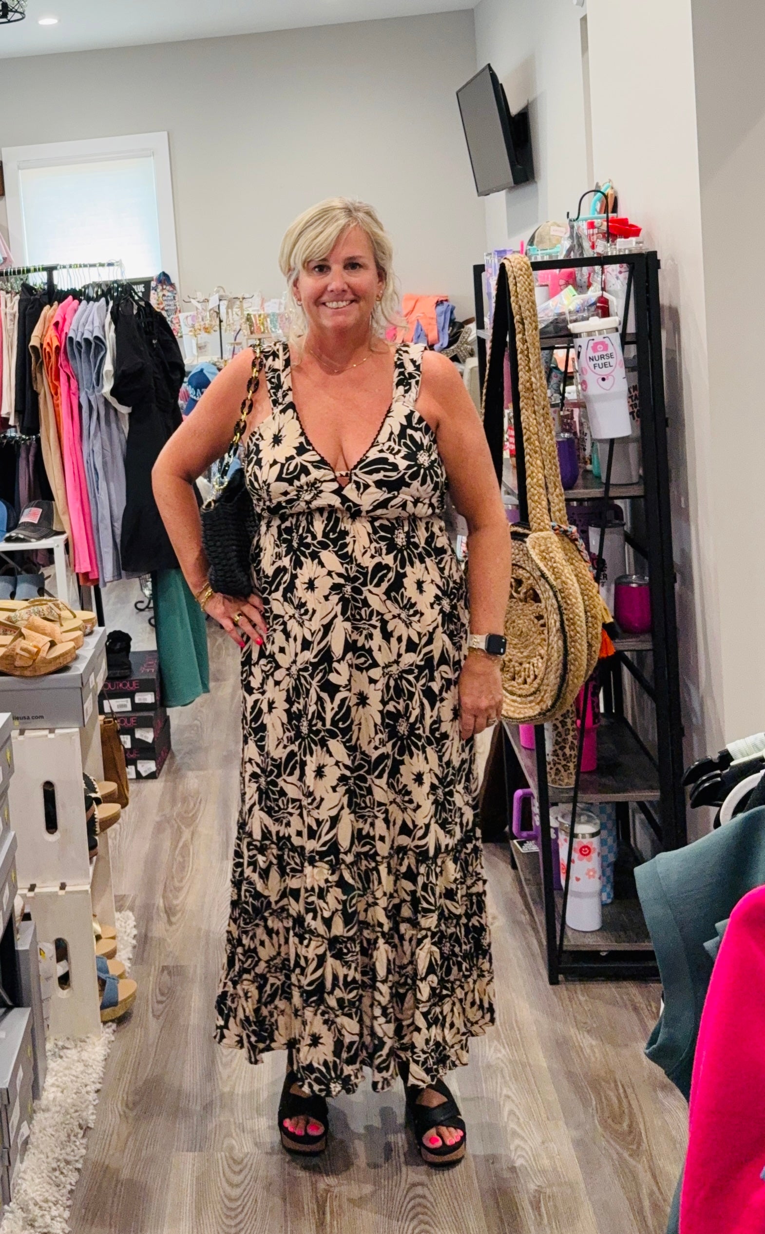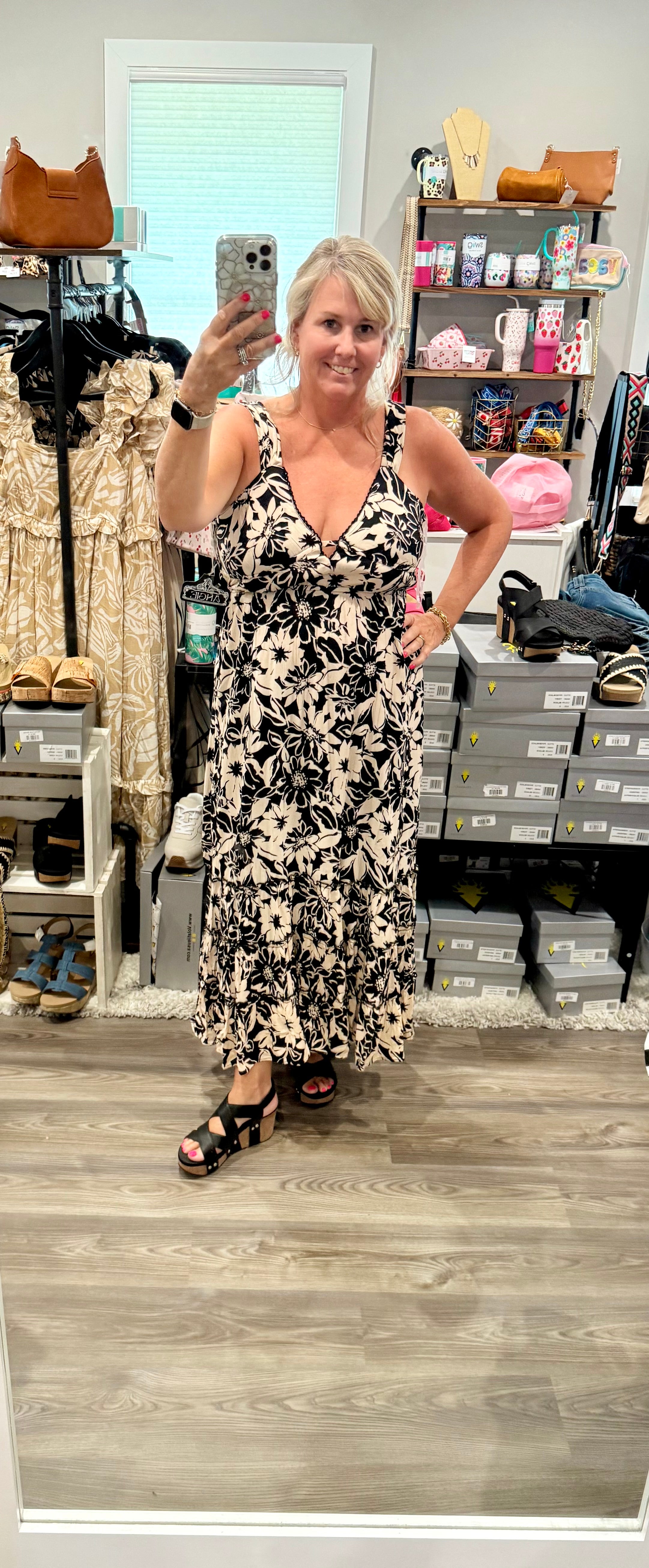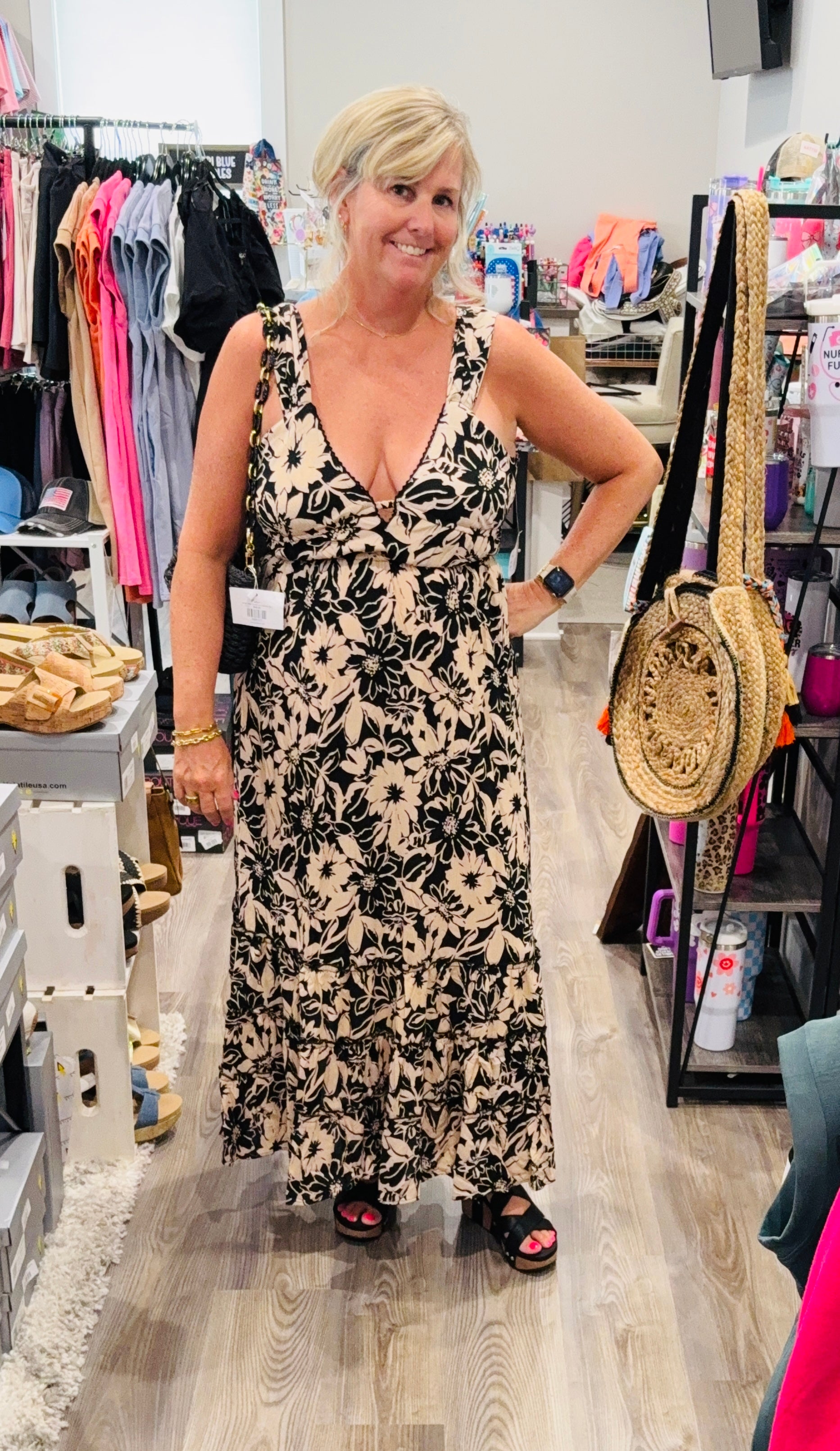 Get ready to stand out this summer in the Deep V Maxi Dress with wide tank sleeve by Angie! This dress's breezy fabric and playful cut make it the perfect choice for any summer event. With its deep v neckline and wide tank sleeves, you'll be comfortable and stylish all season long.