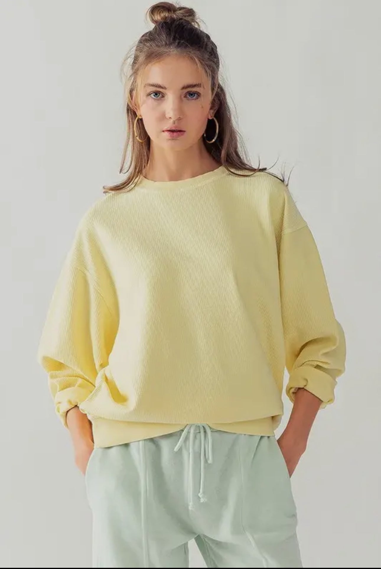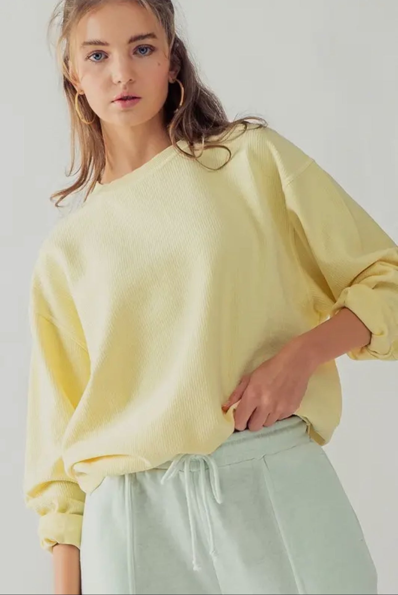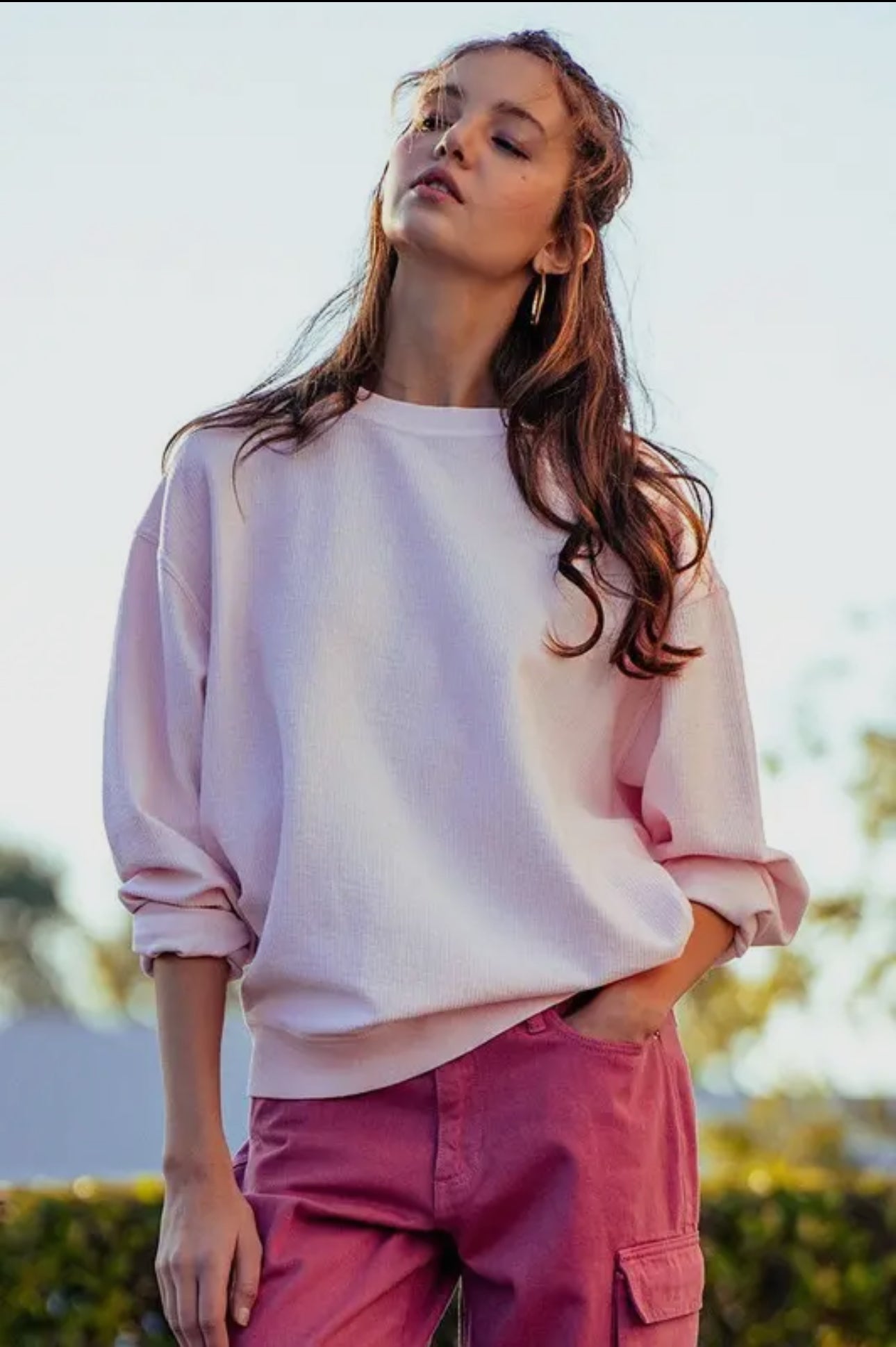 Get cozy in the Emily Oversized Vintage Wash Sweater. This ribbed crewneck sweater is perfect for those chilly days, with a vintage-inspired wash adding a touch of effortless cool. Stay warm and stylish in this oversized sweater.