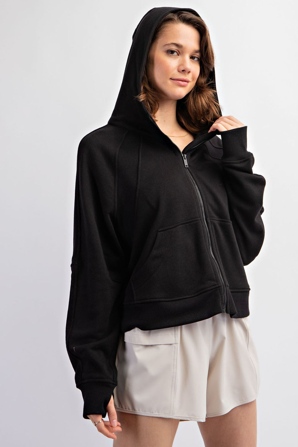 FRENCH TERRY LONG SLEEVE FULL ZIP HOODIE TOP