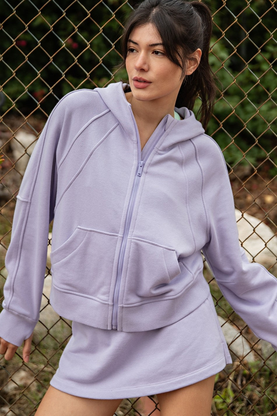 This French terry long sleeve full zip hoodie top offers a trendy, cropped fit. Experience the perfect combination of style and comfort with this fashionable piece. No need to sacrifice style for comfort, get both with this must-have top.