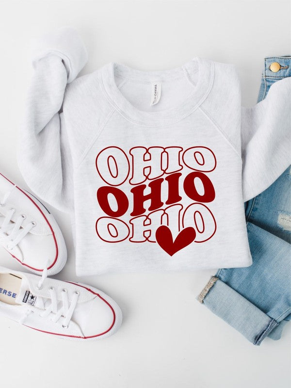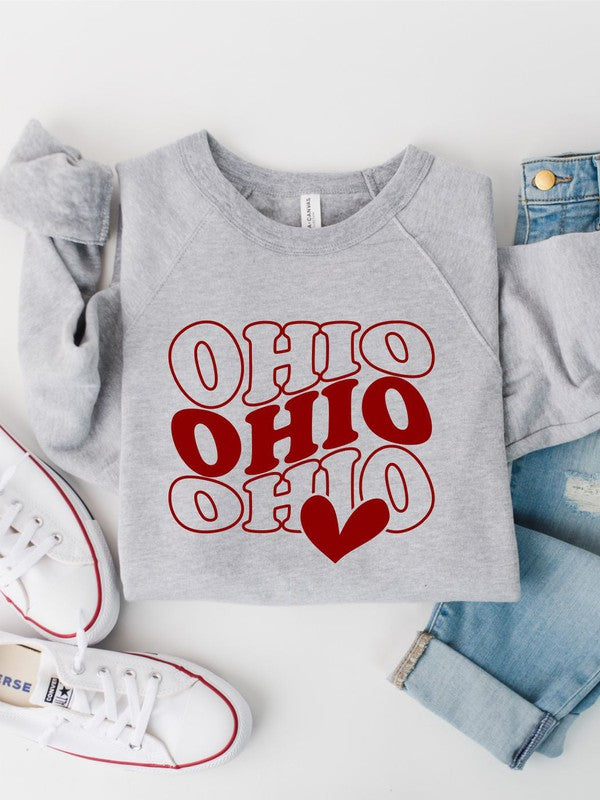 Introducing our newest Ohio sweatshirt! Made with soft, durable fabric and featuring Groovy Ohio with Heart graphic on the front. The comfortable fit and cozy feel make it perfect for those chilly Ohio evenings, while the durable construction ensures it will withstand the test of time. Maroon Print Bella Canvas Brand Groovy Ohio Heart Crewneck Sweatshirt 100% Ringspun Cotton