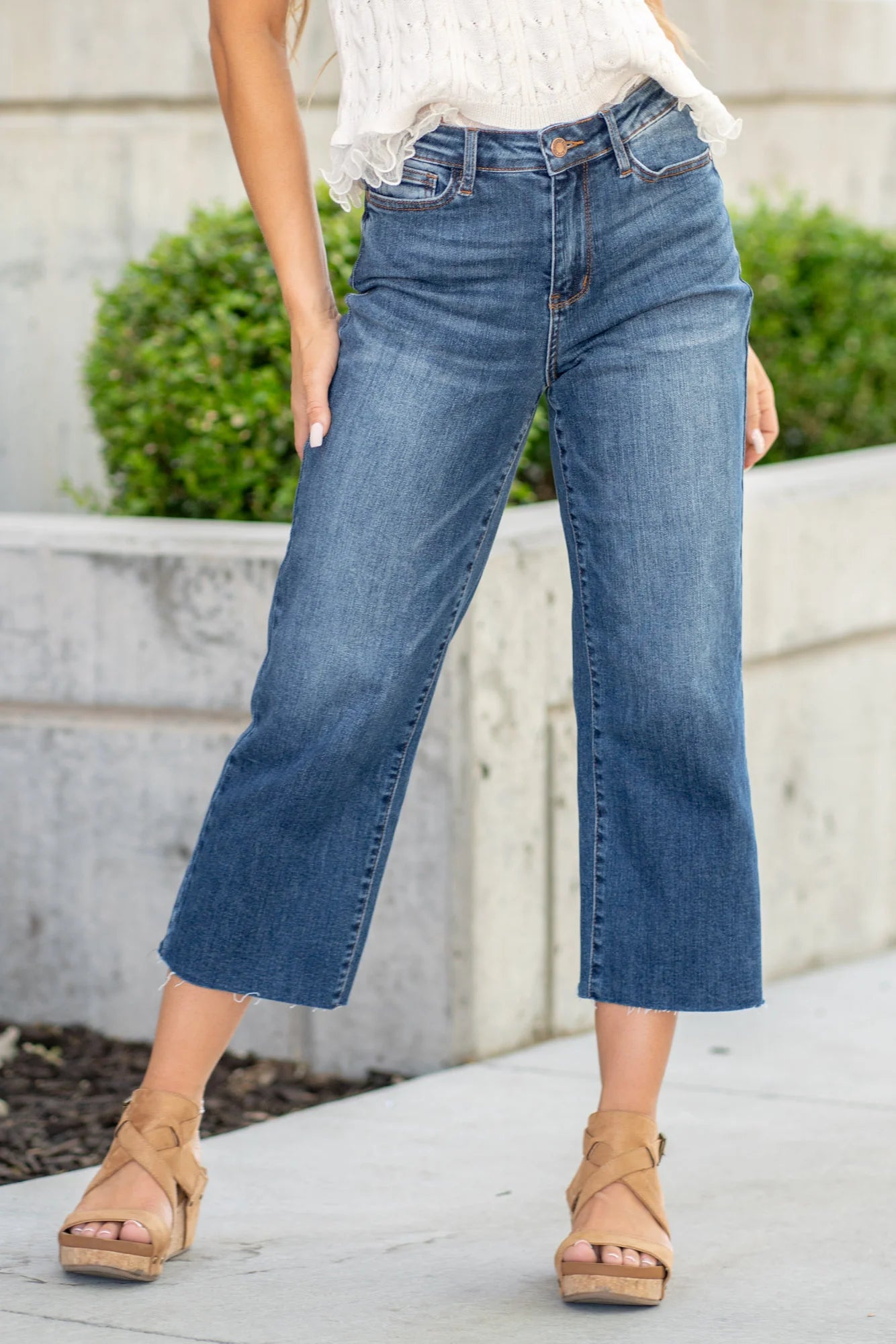 Judy Blue Highwaist Back Pocket Embroidery Crop Wide