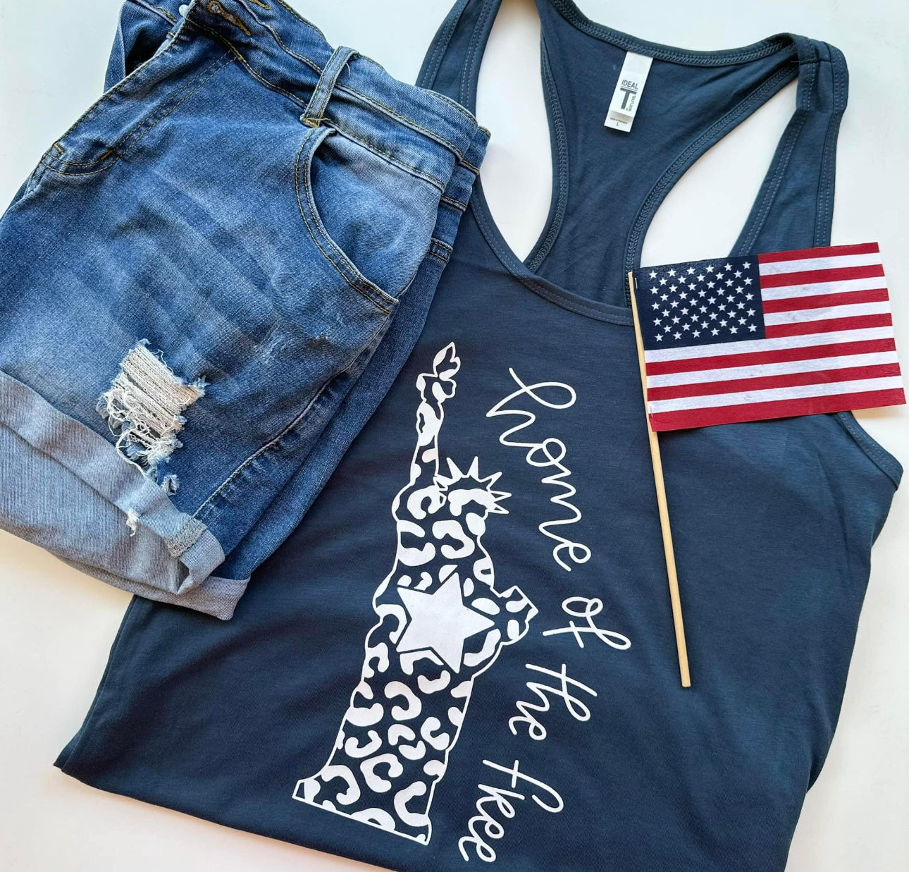 Celebrate independence in style with our Lady Liberty Home of The Free 4th of July tank top. Stay cool and comfortable while showing your patriotic spirit. Made with high-quality fabric for lasting wear. Perfect for any 4th of July BBQ or celebration.