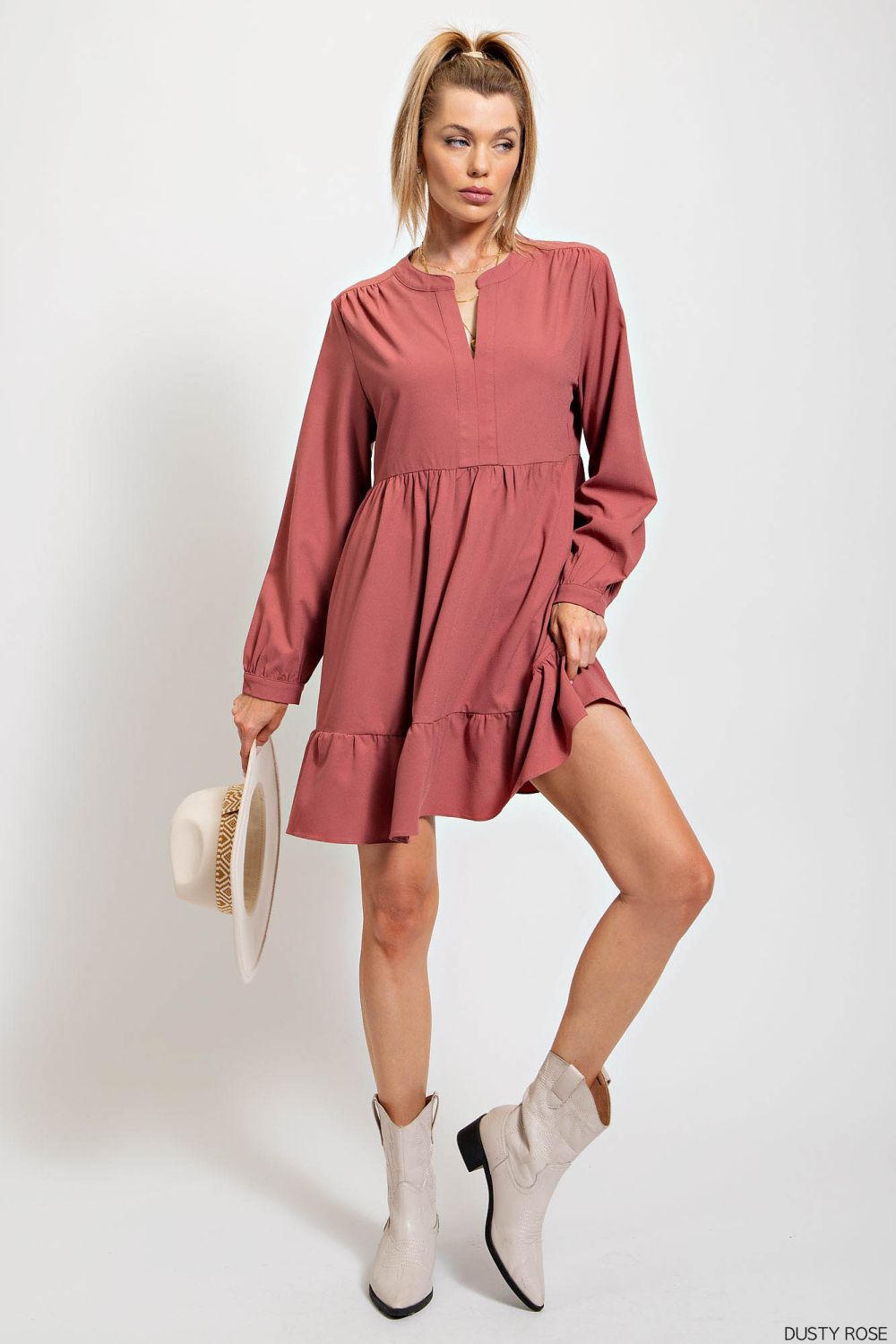 LOOSE FIT RUFFLED DRESS in DUSTY ROSE