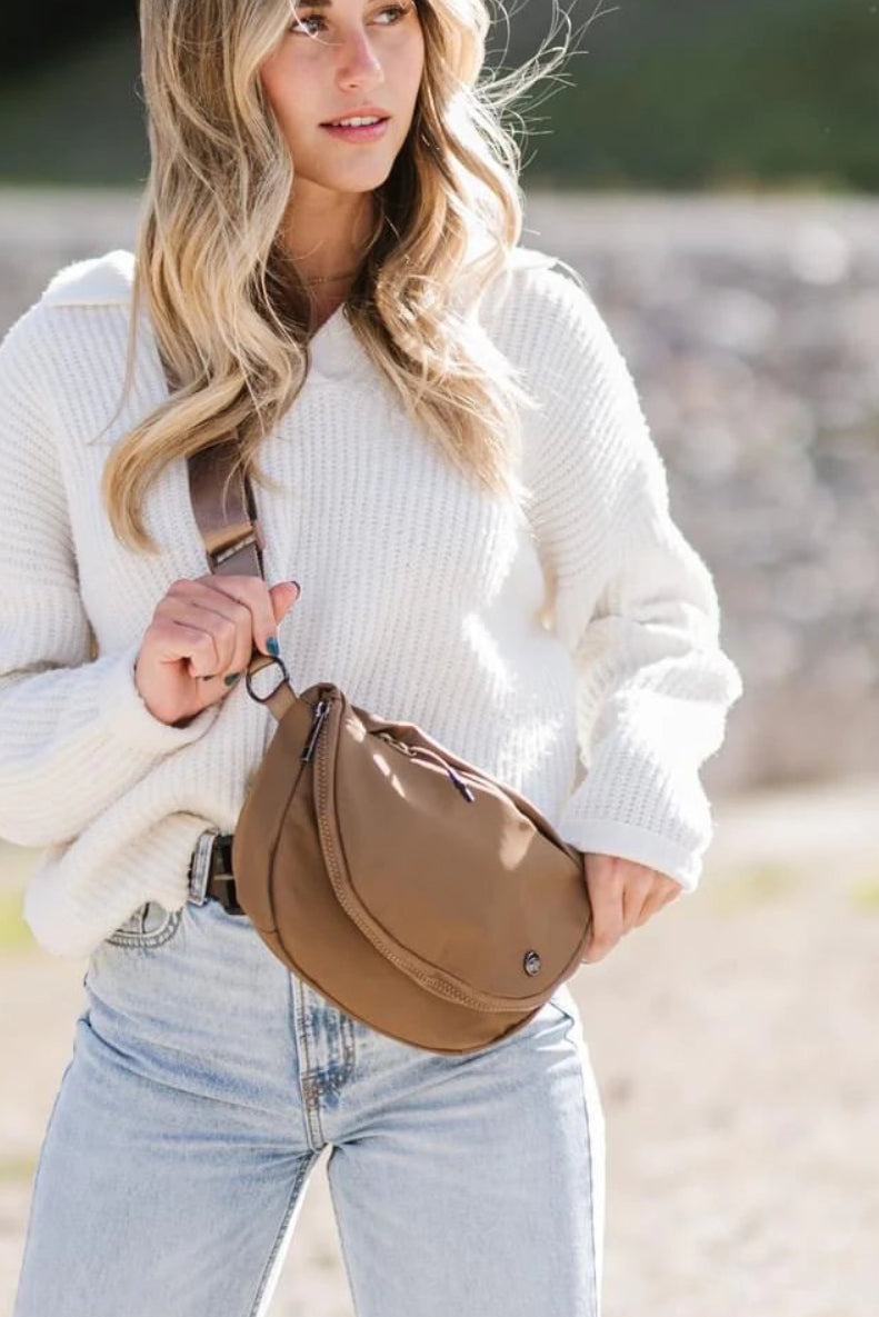 Elevate your style with the Margot Moon Belt Bag, expertly crafted with a sleek black design and a sophisticated moon silhouette. Featuring a wide opening and secure zippered main compartment, this bag offers effortless convenience and peace of mind. Made with high quality Nylon Fabric, it's the perfect must-have accessory for any modern, fashion-forward woman. Measurements: 11"W x 7"H (folded), 13"H (open), 2"W (base), and 50"L strap.