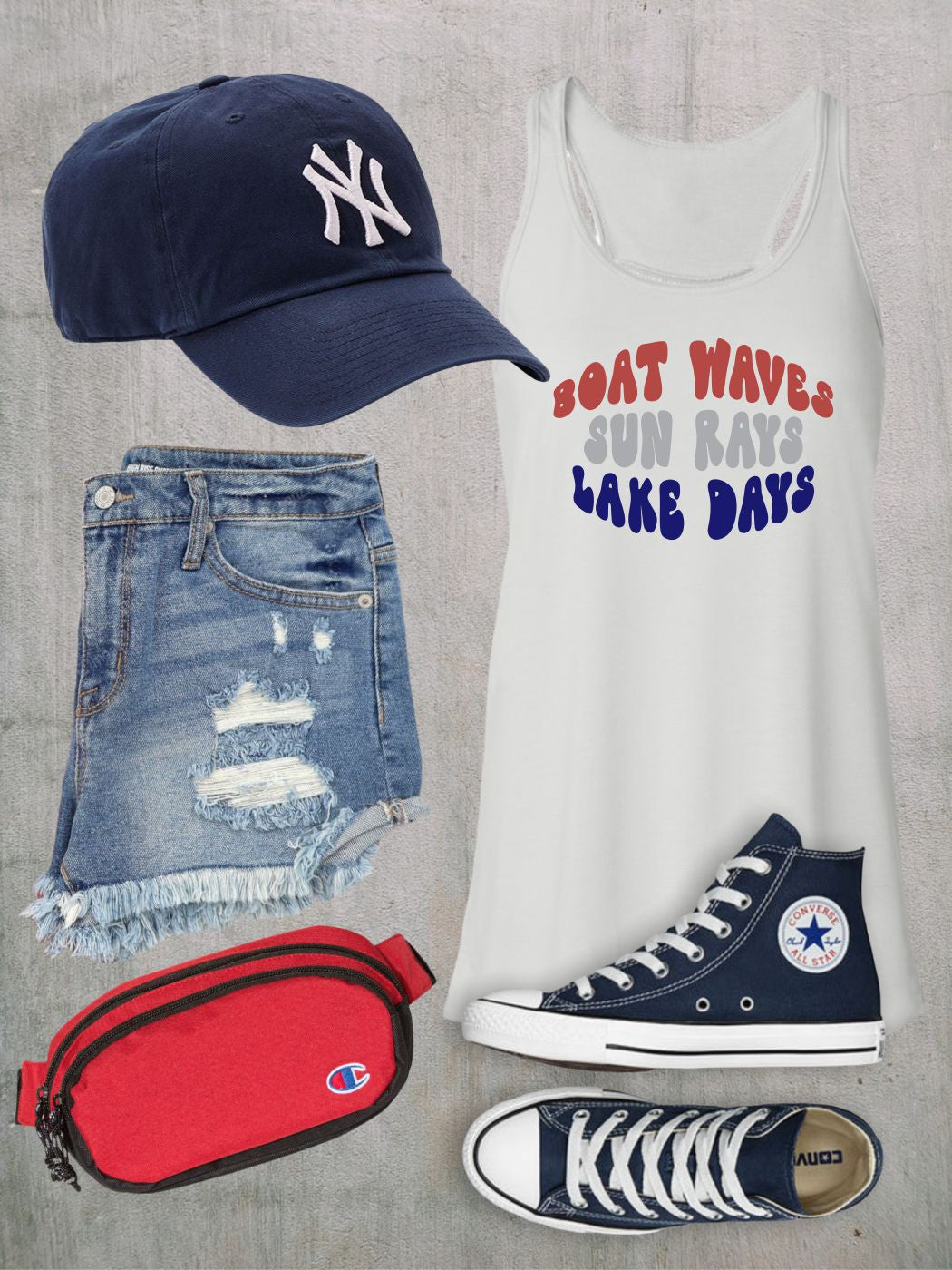Patriotic Boat Waves Sun Rays Lake Days Flowy Tank