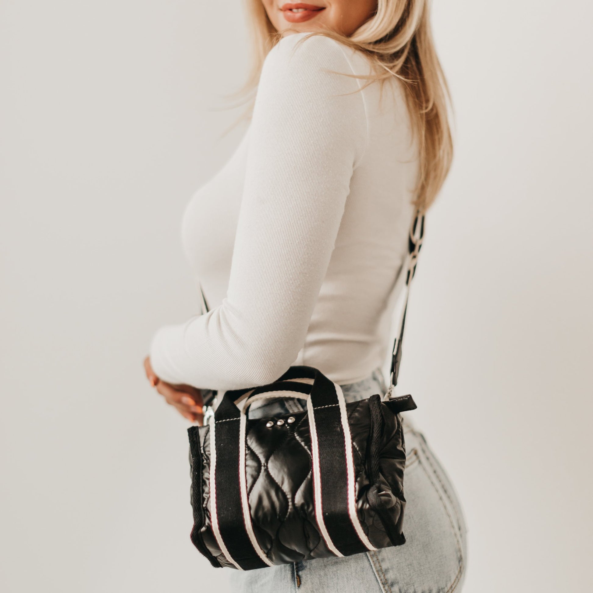 Mini Molly Quilted Crossbody Bag is our latest addition to the 3 Sisters Collection! This high-quality lightweight, quilted mini purse will allow you to go hands-free in style! Spacious enough for your phone and a small wallet, with a trendy shiny patent quilted fabric.