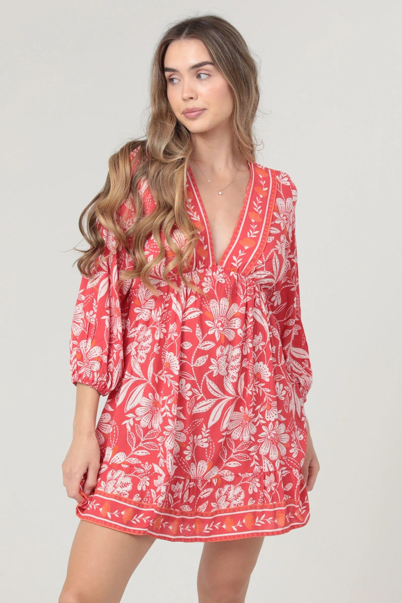 Get ready to turn heads in this cute red floral dress by Angie! Perfect for any occasion, this dress is sure to make a statement. Playful and full of personality, you'll love the unique design and double meaning behind this fun and flirty piece.