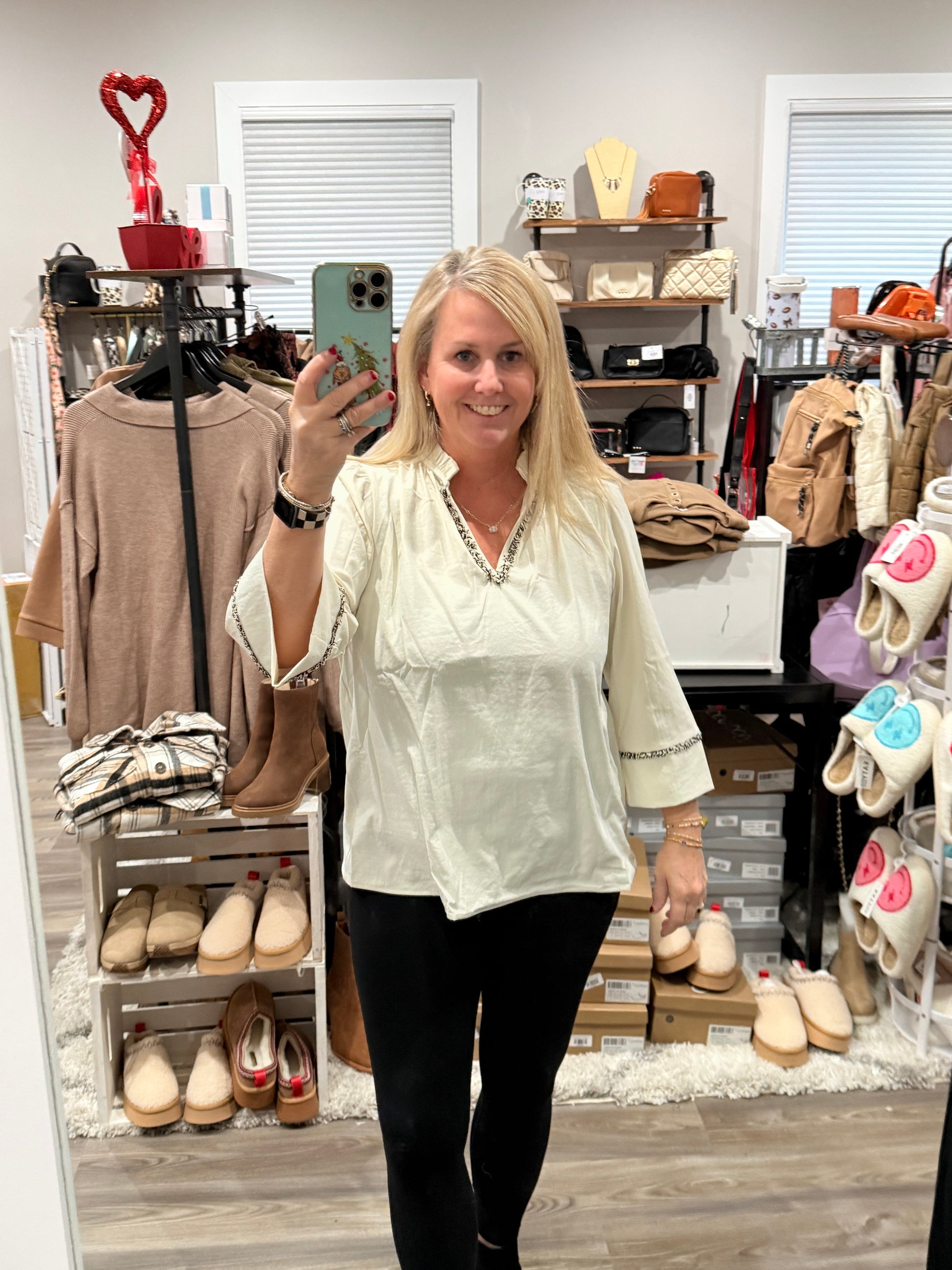 Adorable ruffled neckline adds instant charm and personality to your everyday wardrobe! This delightful blouse features a playful ruffle detail that frames the neck beautifully, making it perfect for anyone who loves a touch of whimsy. Whether you're dressing up for a special occasion or keeping things casual, this sweet top brings fun flair to any outfit. Comfortable and stylish, it's the kind of piece that makes you smile every time you wear it!