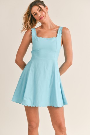 SCALLOP EMBROIDERED SQUARE NECK MINI DRESS