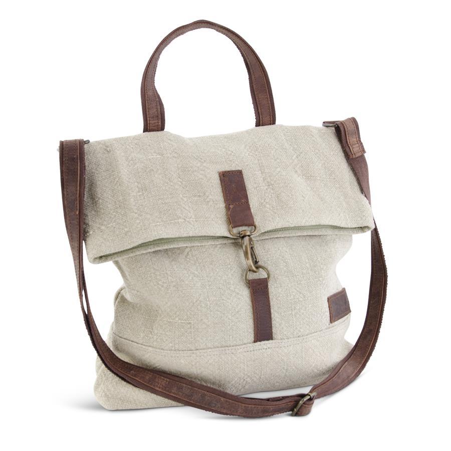 13 INCH SOFT NATURAL TAN CROSSBODY W/FOLD OVER CLOSURE