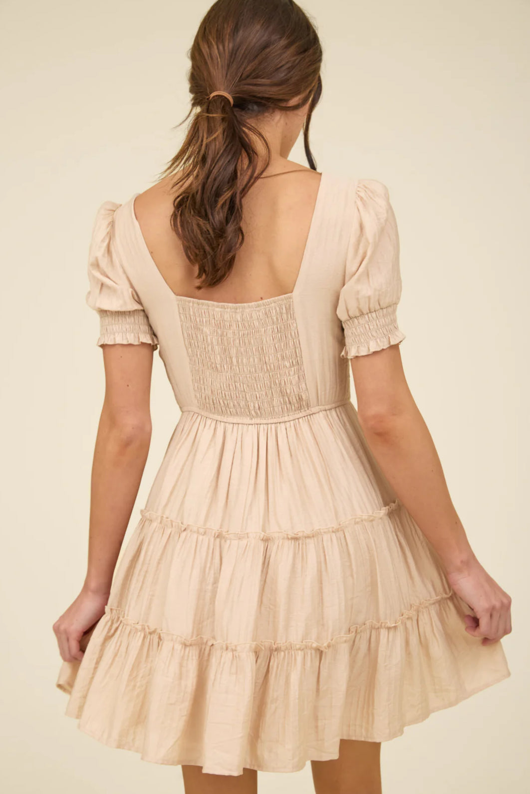 Introducing our Square Neck Smocked Detail Tiered Mini Dress - the perfect combination of style and comfort. Featuring trendy puff sleeves, this dress will make you stand out in any crowd. With its smocked detailing and tiered design, it's the perfect dress for any occasion.