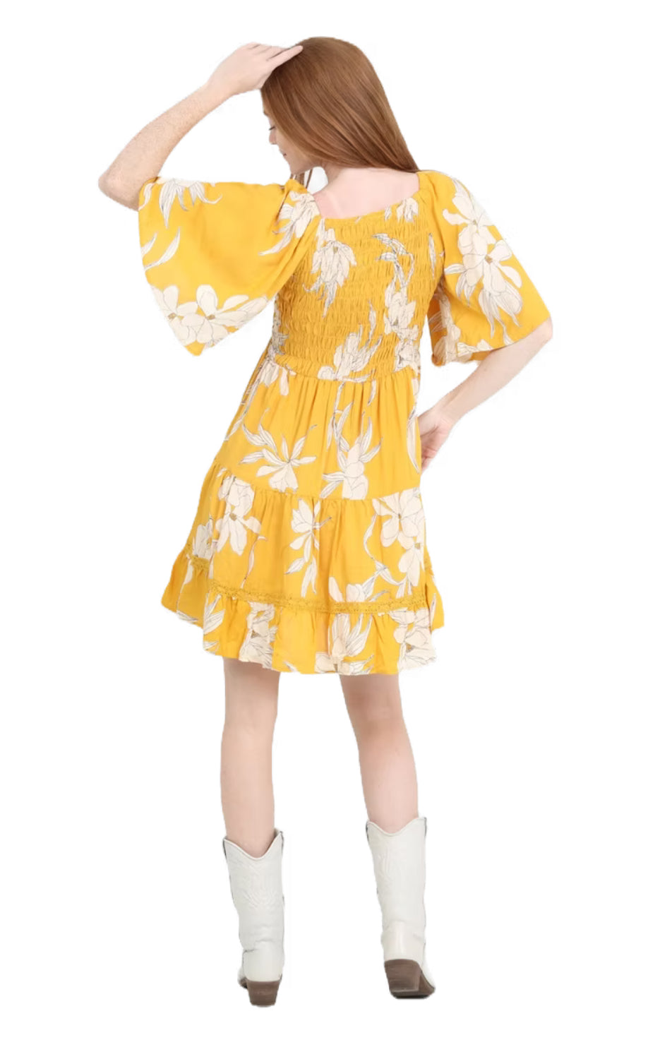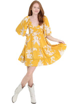 Get ready to turn heads in the Yellow Floral Dress by Angie! This cute dress is perfect for any occasion and will make you stand out in the best way possible. With its vibrant yellow color and beautiful floral design, you'll be the talk of the town. Add this dress to your wardrobe for a playful and fun touch!